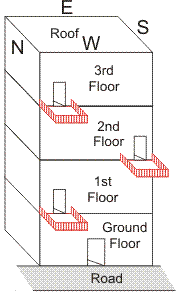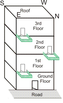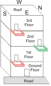 First Floor : Consequent to balcony, the flooring is increased towards North corner. However roof has not increased, thus restricting beneficial effects to 50% only. Balcony on the roof towards West corner has caused extension of the same, however flooring has not extended accordingly, thus restricting adverse effects to only 50%. Second Floor : Consequent to balcony, the flooring is increased towards West corner. However roof has not increased, thus restricting adverse effects to 50% only. Balcony on the roof towards North corner has caused extension of the same, however flooring has not extended accordingly, thus restricting beneficial effects to only 50%. Third Floor : Consequent to balcony, the flooring is increased towards North corner. However roof has not increased, thus restricting beneficial effects to 50% only. |