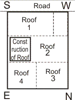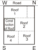 In the figure shown, construction is towards West on the roof. This is correct for the whole building. Rooms on the lower floors are shown in dotted lines. The influence of construction on the roof on Each room as under:
