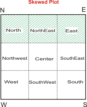 Effect of any part of the terrace being at a lower levelIf the terrace be at a lower level towards East, North & NorthEast, this will be best option. When this is not possible, the whole terrace should be at the same level. At no cost the terrace shall be at a lower level in South, West & SouthWest areas. SouthEast and NorthWEest shall, however be at same level. Slope in the terrace should be from SouthWest to NorthEast. If the terrace level at any area is less by 2 feet, it is considered as sump in that area and the rest of the area height, and the result of the same shall be applicable. Shaded area is the correct place for these