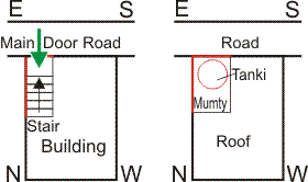 Road is towards SouthWest of the construction. Main door is in the exalted position of South. Stair case and stair case cover are also in the same side. This has adverse effect. female folks being unwell, indebtedness, fights & disputes, mental worries, fire & theft hazards, court cases, problems with administration and second & sixth child having troublesome life & martial discords.