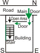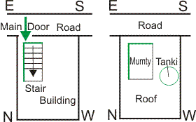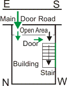 Road is towards North of the construction. Main door is in the exalted position of North-NorthEast. Stair case and stair case cover are also in the same side. This has adverse effect. All the family members and in particular head of the family and other earning male members will have tense life, ailments having no progress in life, financial stringency, loss of name and fame and first & fourth child if male leading a troublesome life and martial discords.