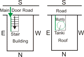 Road is towards South of the construction. Main door is in the exalted position of East-NorthEast. Stair case and stair case cover are also in the same side. This has adverse effect. female folks being unwell, indebtedness, fights & disputes, mental worries, fire & theft hazards, court cases, problems with administration and second & sixth child having troublesome life & martial discords.