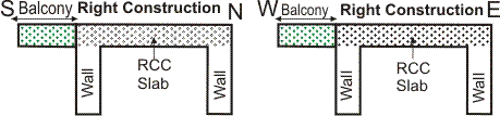 Balcony should be constructed on both sides viz NorthWest & SouthEast and never on one side only. Insure such balconies are equal in all respects.