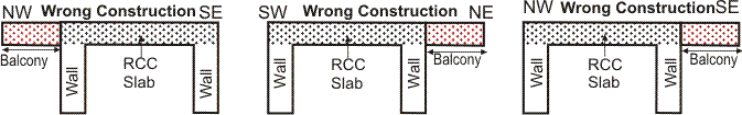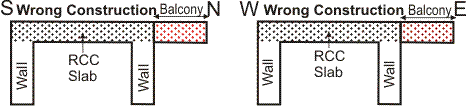 Consequent to balcony on NorthEast / NorthWest / SouthEast side, there is grater load on the respective walls which has got severe adverse effects.
