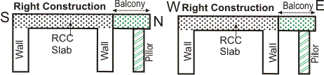 If however a pillar/column is erected in supported of such balcony towards East/North/NorthEast, there is no excessive load on the main East/North/NorthEast walls.