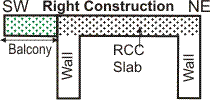 If however a pillar/column is erected in supported of such balcony towards NorthEast, there is no excessive load on the main NorthEast wall.