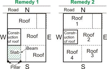 Remedial measures : It is best to remove all construction on the roof. If it is not possible then following are the remedies.