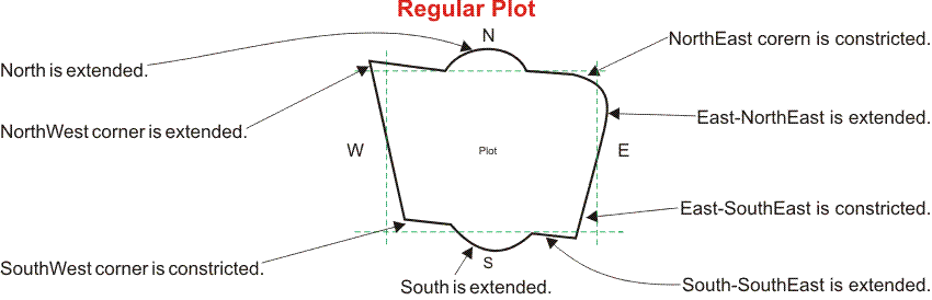 If any plot / building / room changes the shape consequent to extending or constricting the corners, the following principles be adhered to.