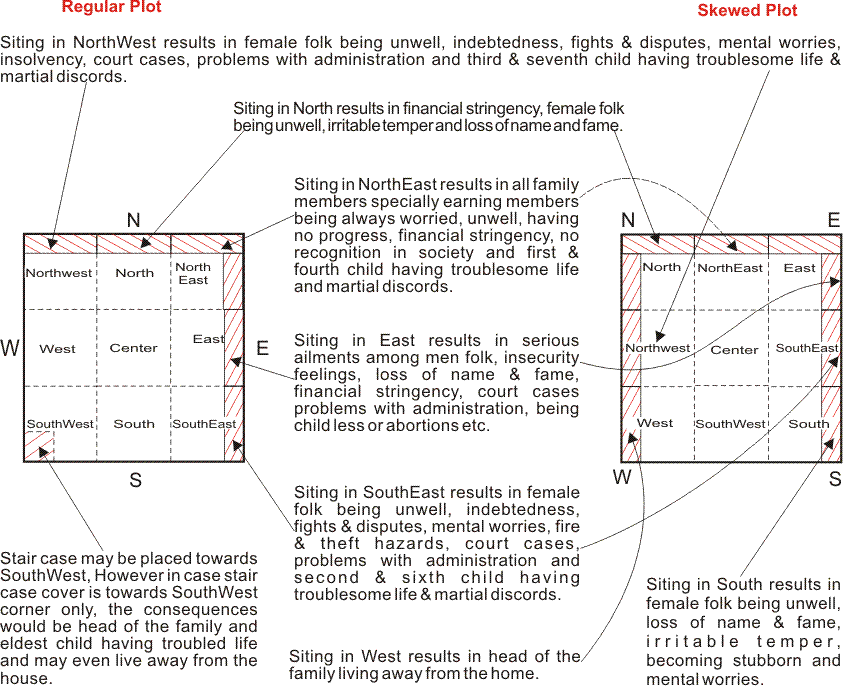 These may not be constructed towards East, North, NorthEast, NorthWest, SouthEast walls and the corners of any room.